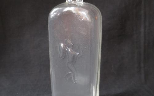 Trekantig diflaska med ängel i relief.Flaskan är tillverkad vid Målerås Glasbruk. Höjd: 15,5 cm Diameter: ca 5,5 cm Pris: 90 krArtikelnummer: 5830Barnets världGlasLoppis (inget kostar mer än 100 kr)
