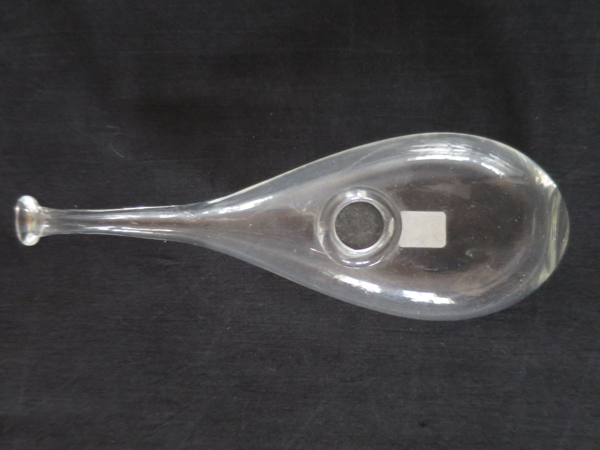 Diglas, diflaska, dihorn eller nappflaska av klarglas. Längd: 19,5 cm Pris: 220 krArtikelnummer: 6456Kuriosa & samlarföremålBarnets världGlas