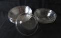 Filbunksskål av klarglas med omvikt kant och synligt puntelmärke i botten. 20 st. skålar finns och alla är hela och utan nagg. Att äta ur dessa skålar med sitt tunna glas är en speciell njutning. Kan idag användas som efterrättsskålar.
