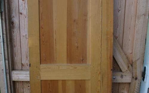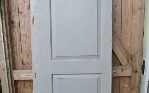2-speglad, vänsterhängd garderobsdörr som placerades i vägglivet utan karm. Dörren har falsad ytterkant och är hängd med s.k. ledgångjärn, vilket var vanligt för så här lätta dörrar. Dörren har tidigare suttit i en prästgård och är i mycket fint skick.