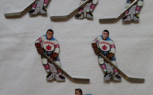 Ishockeyspelare av litograferad plåt till ishockeyspel från 1950-/60-talet. Målvakten kostar 100 kr. Höjd: 6 cm Pris: 50 och 100 kr/st.Artikelnummer: 1438-3Barnets världLoppis (inget kostar mer än 100 kr)