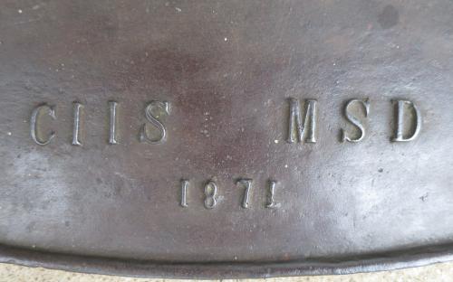 Gjuten järnhäll daterad 1871 och förmodligen en gåva till ett brudpar då den bär både en mans, CIIS, och en kvinnas, MSD, initialer. Mycket fint skick. Mått: 59 x 33 cm HÄMTVARA Pris: 5.000 krArtikelnummer: 1558Spisar & kaminer