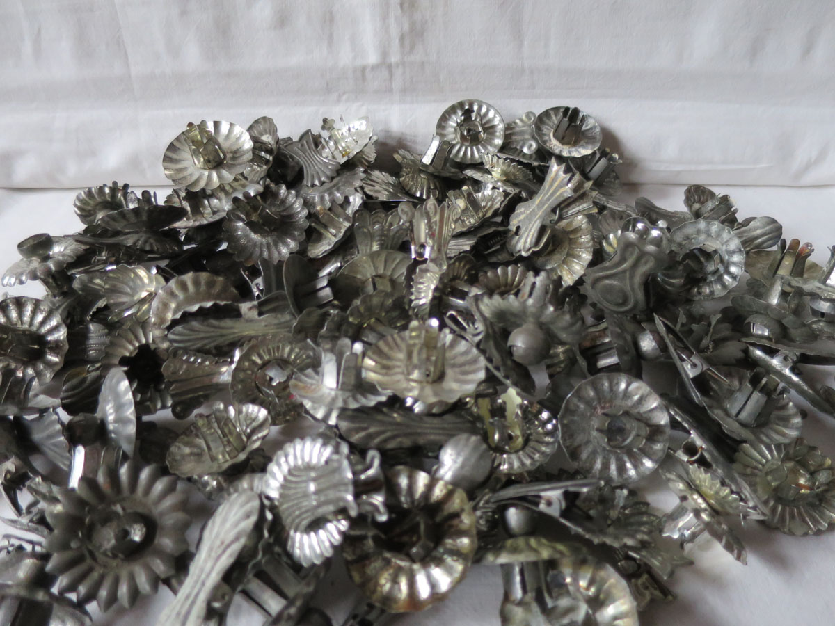 Före de elektriska ljusen var det dessa ljushållare av bleckplåt som sattes i julgranen. Farliga men väldigt charmiga. Flera, men snarlika, modeller kan förekomma och många helt lika går att plocka ihop. 73 st. finns.
