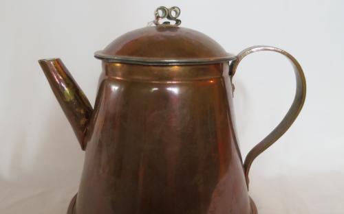 Kaffekanna av koppar med förtent insida. Stämplad på handtaget A.H. HJELM EKSJÖ. Hjelm var kopparslagare i Eksjö. Höjd: 17,2 cm Diameter: 15 cm Pris: 450 krArtikelnummer: 5280KökKopparföremål