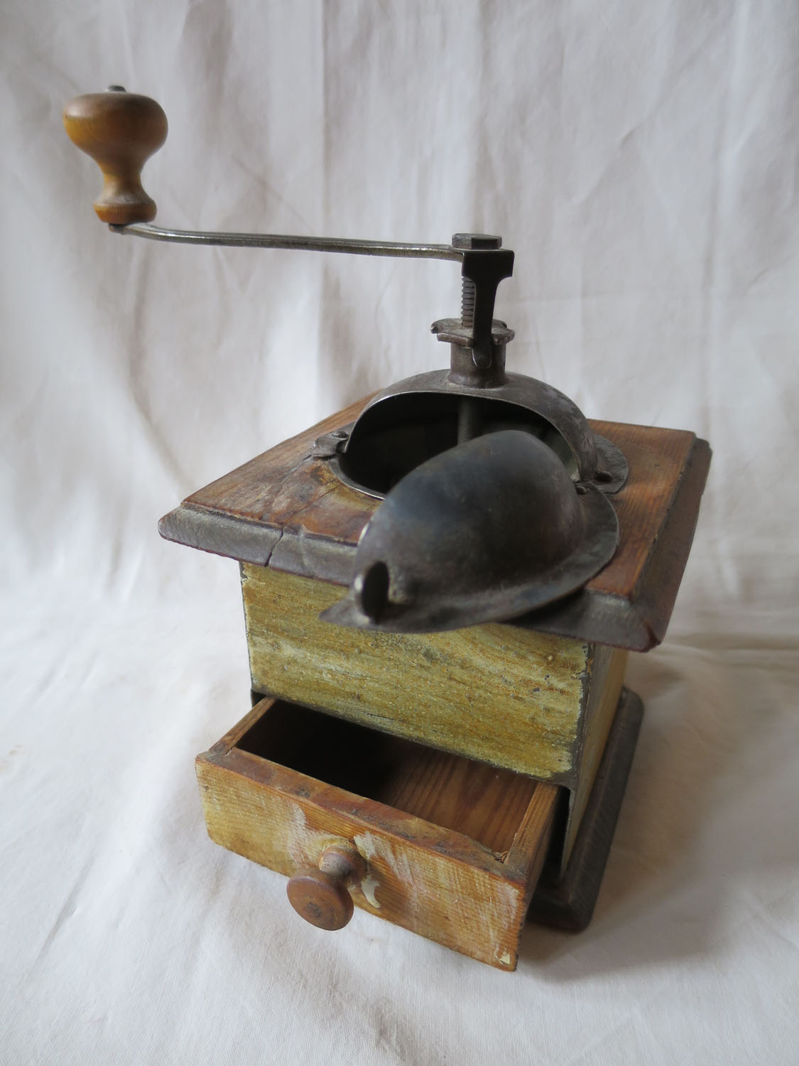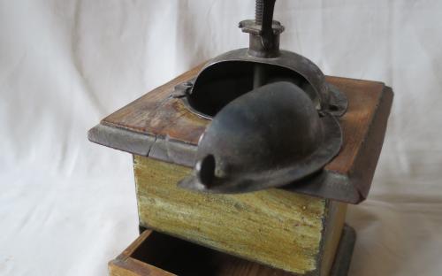 Kaffekvarn av trä och plåt. Mått (utom vevhuset): 13x12,8 cm Pris: 350 krArtikelnummer: 6343KökKuriosa & samlarföremål
