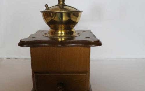 Kaffekvarn av nyare modell av trä och mässing. Kvarnen är aldrig använd och passar utmärkt för den som vill mala sin egen kaffeblandning. Mått: 15 x 15 x 20,5 cm Pris: 350 krArtikelnummer: 9159KökKuriosa & samlarföremål