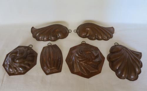 Kakformar i tjock, oputsad kopparplåt med liten upphängningsögla av mässing. Längd: 9 - 13 cm Pris: 90 kr/stArtikelnummer: 2041-4KökKopparföremålLoppis (inget kostar mer än 100 kr)