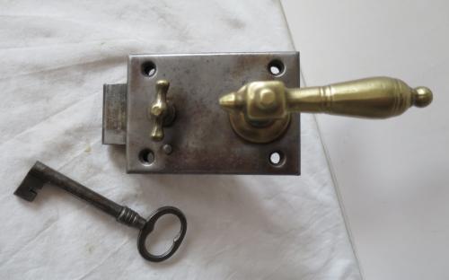 Renoverat lås med mässingstrycke och låsvred av mässing. För vänsterhängd dörr. Mått: 10 x 7 cm Pris: 700 krArtikelnummer: 2943Lås