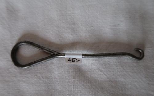 Ett enkelt men nödvändigt litet redskap då skor och kängor förr hade många och små hål där knappar och skosnören skulle knäppas eller träs. Kroken är av järn. Längd: 9,7 cm Pris: 45 krArtikelnummer: 7936ÖvrigtLoppis (inget kostar mer än 100 kr)