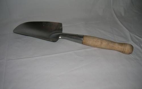 Plåt med träskaft. Längd: 34,5 cm Pris: 90 krArtikelnummer: 283TrädgårdLoppis (inget kostar mer än 100 kr)