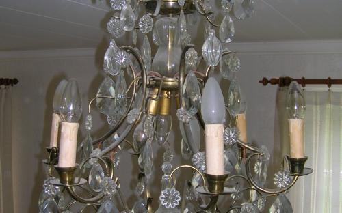 Ljuskrona i barockstil med 6 ljusarmar för elbelysning. Skärmar till glödlamporna finns för den som önskar. De flesta vill ju ha lamporna synliga. Höjd: ca 65 cm Diameter: 50 cm HÄMTVARA Pris: 4.800 krArtikelnummer: 8220Lampor & belysningLilla kvalitetsavdelningen