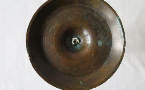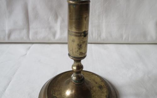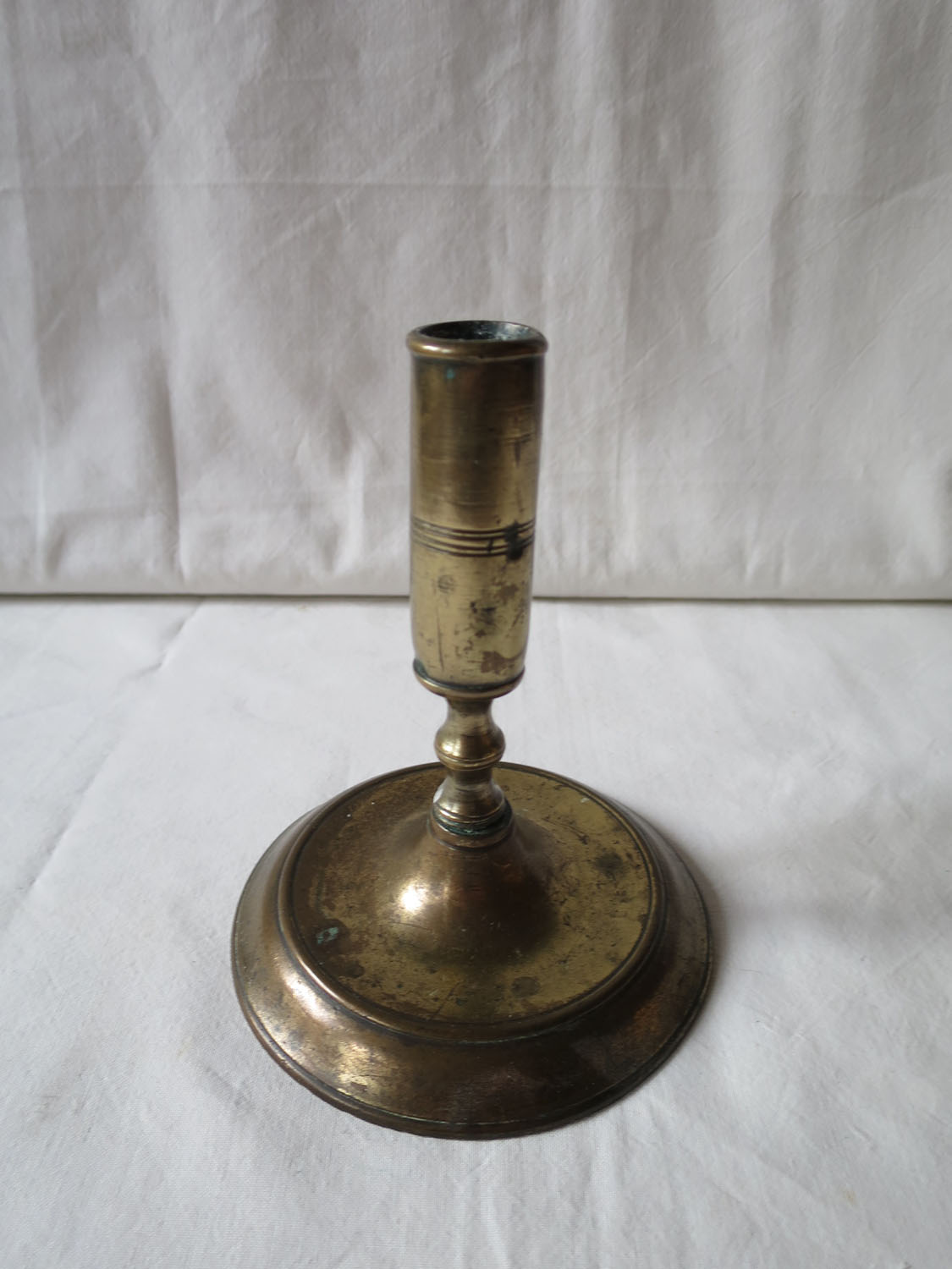 Mycket tung mässingsljusstake från 1700-/1800-tal. Gängningen något sliten, varför gängan måste "drevas" med lite papper för att ordentligt greppa. Höjd: 13,2 cm Diameter: 11,2 cm Pris: 800 krArtikelnummer: 1953
