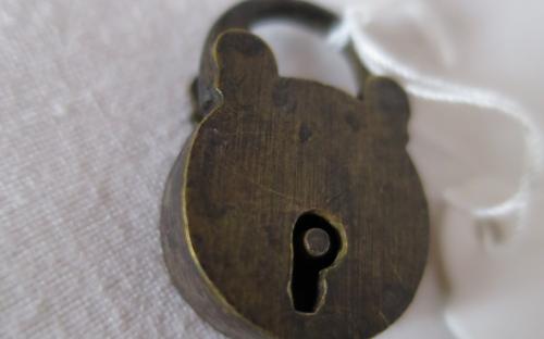 Lås av mässing och bygel av järn. Nyckel saknas. Längd: 2,7 cm Pris: 100 krArtikelnummer: 173-4ÖvrigtLoppis (inget kostar mer än 100 kr)