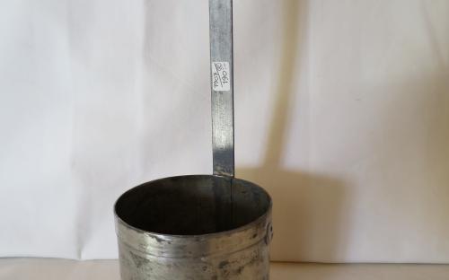 Mjölk-/gräddmått av kraftig bleckplåt. Rymmer 5 deciliter och är krönt 45 (1945) och U. Totalhöjd: 17,7 cm Diameter: 9,2 cm Pris: 190 krArtikelnummer: 7907Kök