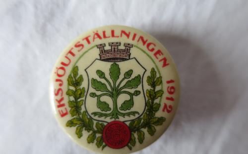 Nålmärke från Eksjöutställningen 1912. Diameter: 3,3 cm Pris: 100 krArtikelnummer: 2475Majblommor/nålmärkenLoppis (inget kostar mer än 100 kr)