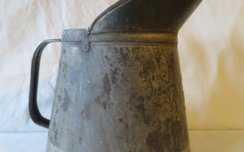 2 Liters oljekanna av bleckplåt i fint skick. Krönt och märkt P 62 (1962).