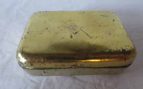 Plåtask av gulfärgad metall. Mått: 7 x 4,5 x 2 cm Pris: 35 krArtikelnummer: 3109-3Kuriosa & samlarföremålLoppis (inget kostar mer än 100 kr)
