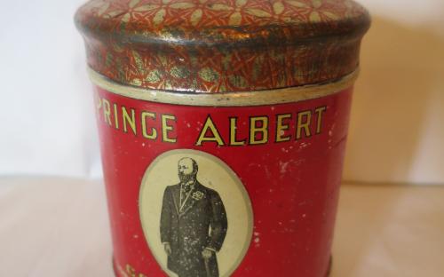 Plåtburk med visst slitage och några små bucklor. Höjd: 14,2 cm Diameter:10,5 cm Pris: 125 krArtikelnummer: 156Kuriosa & samlarföremålÖvrigt