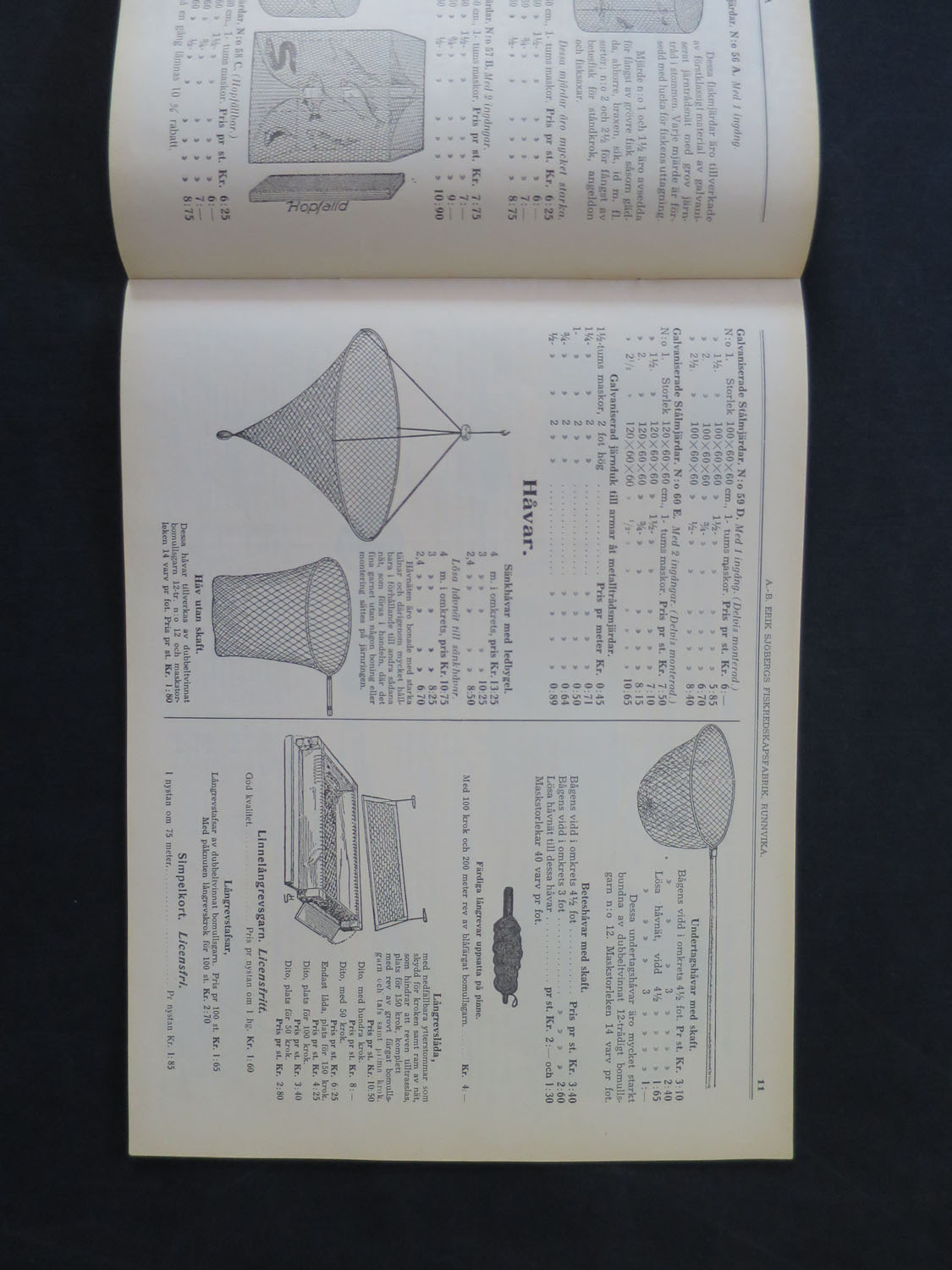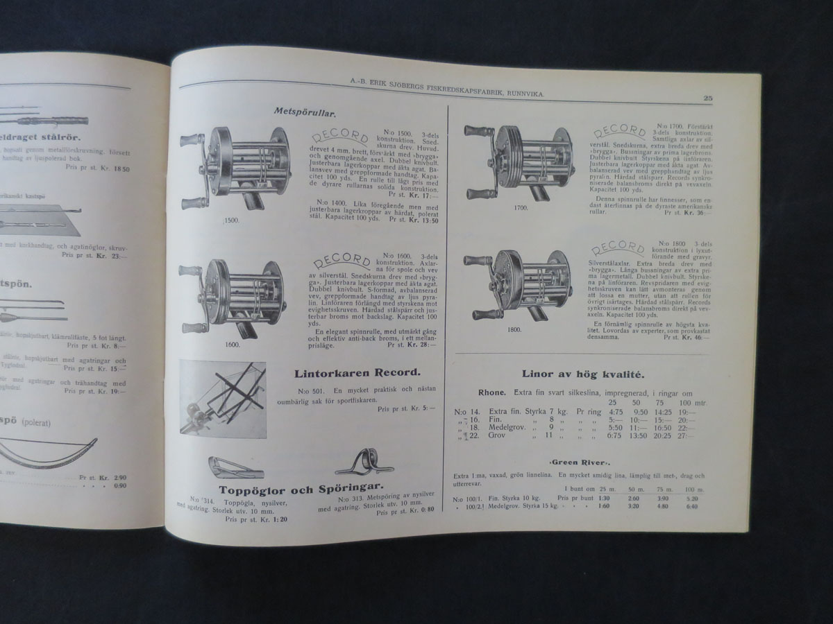Sjöbergs fiskeredskap Priskurant 1945. Utgiven av A.-B. Erik Sjöbergs Fiskeredskapsfabrik i Runnvika. En priskurant om 30 sidor i ett nästan helt perfekt skick. Mått: 29 x 22 cm (liggande format) Pris: 550 krArtikelnummer: 322Böcker & tidningarFiske, jakt & vapen