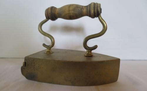 Lodstrykjärn av mässing med svarvat handtag av trä. Lod saknas.Fint skick. Längd: 17,5 cm Bredd: 10,3 cm Höjd: 15 cm Pris: 450 krArtikelnummer: 6338AllmogeKuriosa & samlarföremål