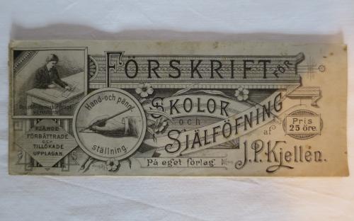 KJELLÉN, J.P.:Förskrift för skolor och själföfningar. Totalt 52 sidor.Ett bra ex. av en välskrivningsförlaga från 1896. Mått: 22,2 x 9 cm Pris: 120 krArtikelnummer: 8930Böcker & tidningarDiverse