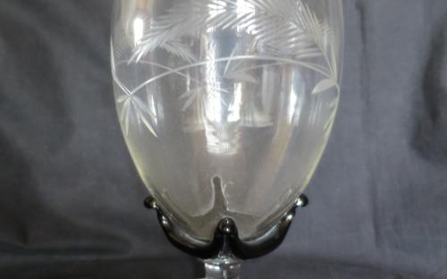 Vas på fot med gravyr av korslagda kvistar. 1930-tal. Höjd: 19,8 cm Diameter: 11 cm Pris: 250 krArtikelnummer: 7180Glas