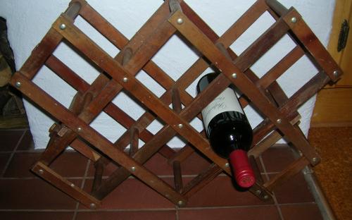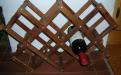 Lasyrmålat,troligen för att imitera teak. Kan fällas ihop och blir då 51 x 10,5 cm. Utfällt rymmer det 8 vinflaskor och har måtten: längd 54 cm, höjd 38 cm, bredd 14,5 cm.
